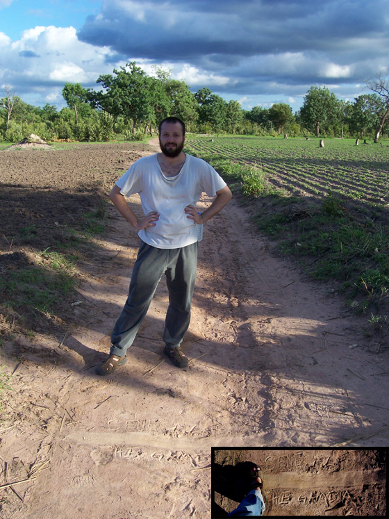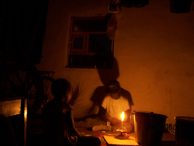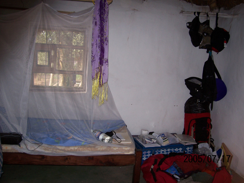 23:00: Blow out the candle, get into bed, close the mosquito net, lie down, try not to notice the fact that as I sweat (I only really stop during the bucket baths) the bed is getting more and more wet. Attempt to ignore the noises of crawling in my hut, the livestock outside, or the dirt (?) falling from my roof. | |||